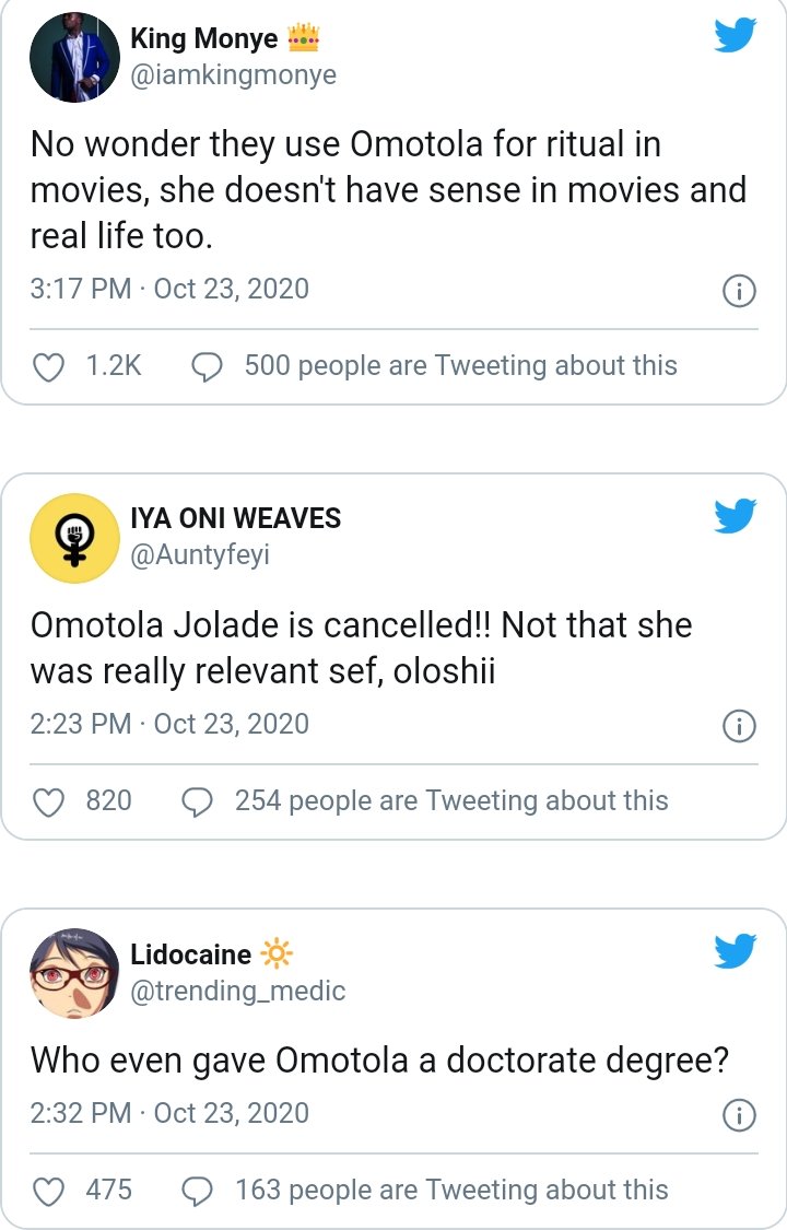 Nigerian actress Omotola Jolade-Ekeinde is currently been tongue lashed on social media over a recent tweet which she shared concerning the tragic shootings at Lekki tollgate.