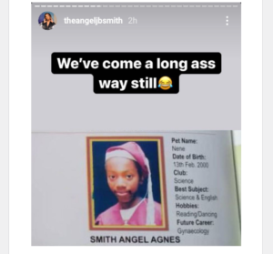 However, confirming her age, Angel took to her Instagram page to share a photo of her school card, revealing that she was born on 13th February, 2000.